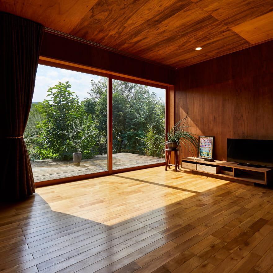 自然の豊かな地域に建つ住まいです。周囲の環境に調和し、自然の中で穏やかに暮らせる佇まいを目指しました。