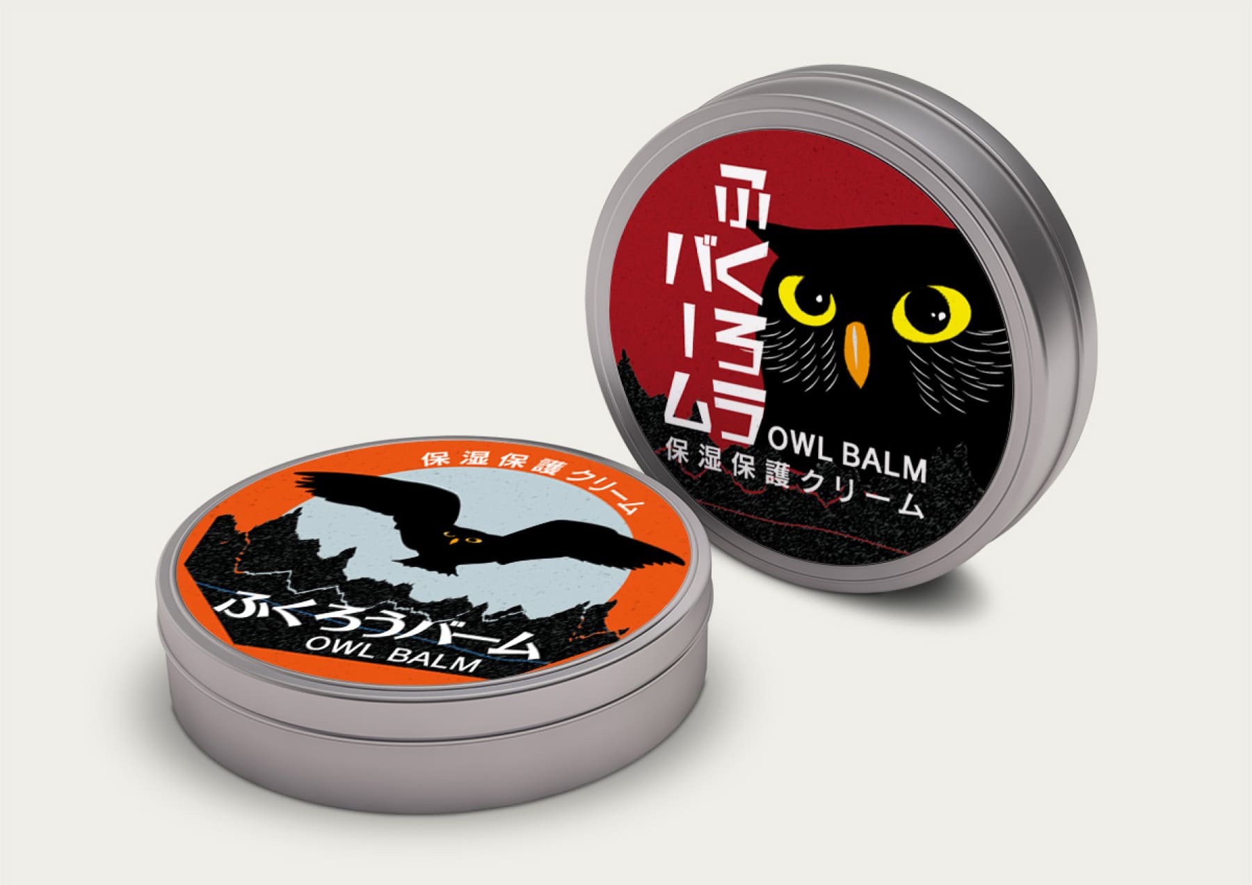 デザイン提案の過程で、すべてのパッケージを商品化していただけることになり(中身は同じバームです)、使う方が好きなフクロウを選び、アウトドアの相棒としてポケットに忍ばせていただけるようなデザインとしました。